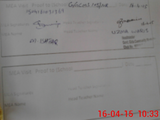 | Attendance Register | Head Teacher | MEA with School | Visit Proof |