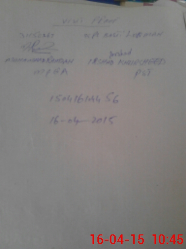 | Monitoring Date: 16-04-2015 | Start Time: 16-04-2015 10:09 AM | End Time: 16-04-2015 10:46 AM | Name of MEA: Mu**** Ra**** BN**** 37 | |