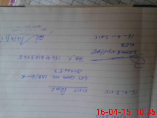 | Monitoring Date: 16-04-2015 | Start Time: 16-04-2015 09:58 AM | End Time: 16-04-2015 10:36 AM | Name of MEA: Za**** BN**** | |