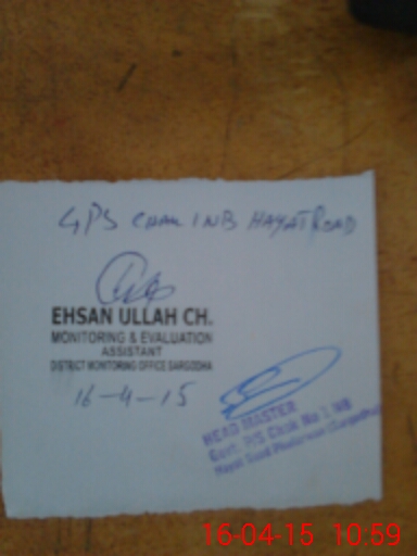 | EMIS Code: 38410843 | Name of School: GPS CHAK NO.1 NB HAYAT ROAD PHULARWAN | |||