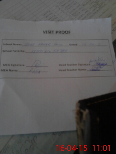 | Attendance Register | Head Teacher | MEA with School | Visit Proof |