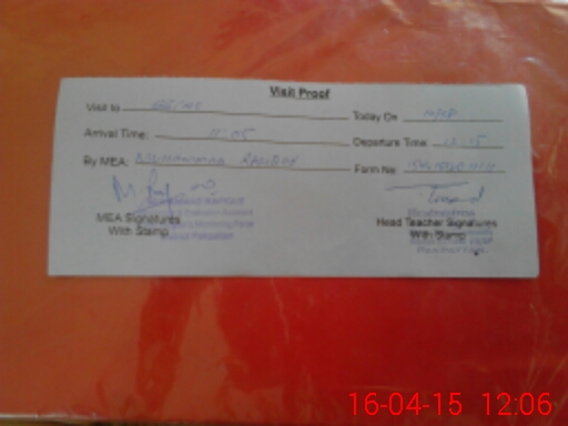 | Attendance Register | Head Teacher | MEA with School | Visit Proof |