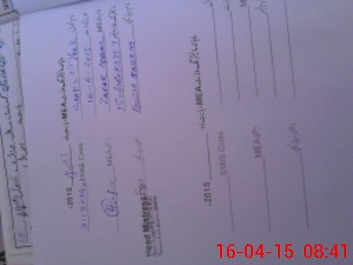 | Monitoring Date: 16-04-2015 | Start Time: 16-04-2015 08:13 AM | End Time: 16-04-2015 09:02 AM | Name of MEA: Za**** Iq**** BN**** | |