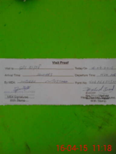 | Monitoring Date: 16-04-2015 | Start Time: 16-04-2015 10:15 AM | End Time: 16-04-2015 11:18 AM | Name of MEA: Gh**** Mu**** Mu**** (R**** | |