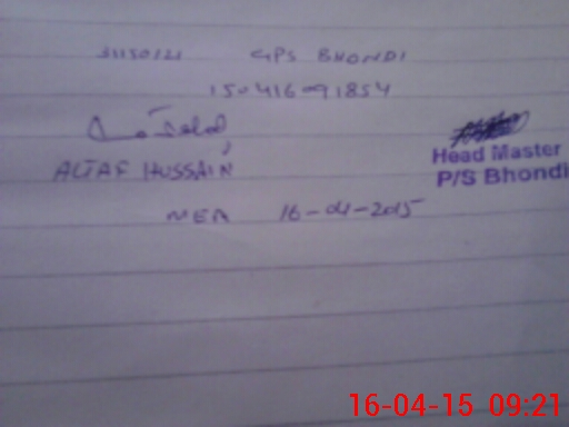 | Name: SH**** Hu**** Designation: (School Headmaster's/Headmistress's) Pst Phone/Cell Number: 03**** |