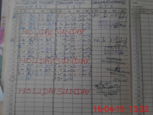 | CNIC | Full Name | Designation | R/C | Absence During Last Calender Month |
