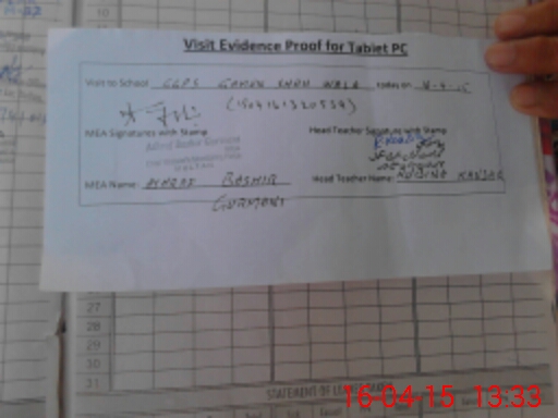 | Attendance Register | Head Teacher | MEA with School | Visit Proof |