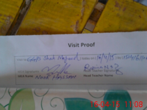 | Attendance Register | Head Teacher | MEA with School | Visit Proof |