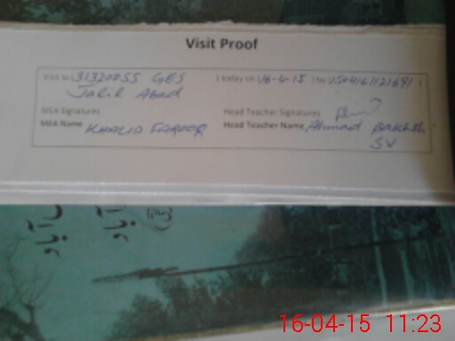 | Attendance Register | Head Teacher | MEA with School | Visit Proof |