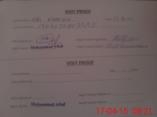 | Attendance Register | Head Teacher | MEA with School | Visit Proof |