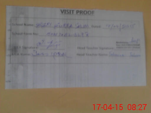 | Attendance Register | Head Teacher | MEA with School | Visit Proof |