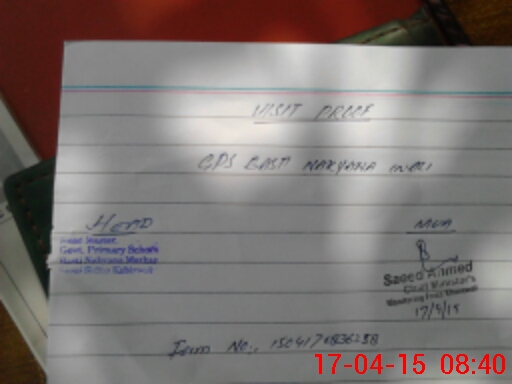 | Attendance Register | Head Teacher | MEA with School | Visit Proof |