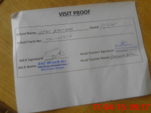 | Attendance Register | Head Teacher | MEA with School | Visit Proof |