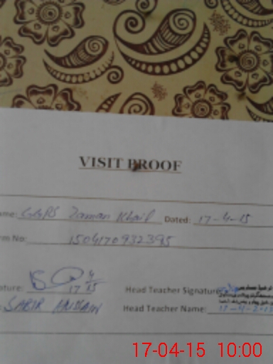 | EMIS Code: 38220201 | Name of School: GGPS ZAMAN KHAIL | |||