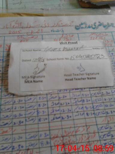 | Attendance Register | Head Teacher | MEA with School | Visit Proof |