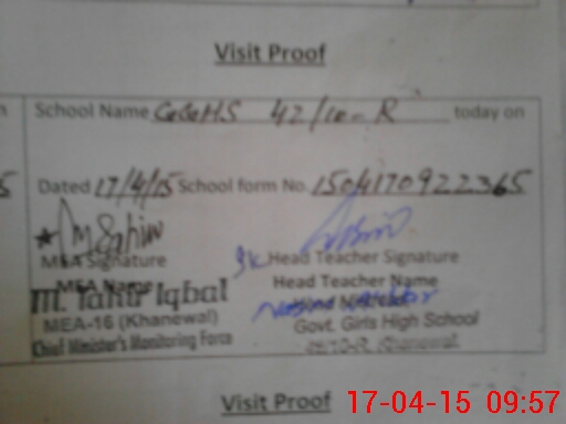 | EMIS Code: 36420103 | Name of School: GGHS 42/10-R, KHANEWAL | |||