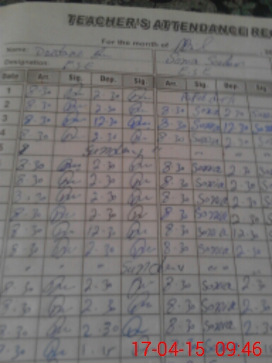 | CNIC | Full Name | Designation | R/C | Absence During Last Calender Month |