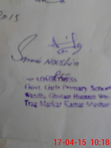 | Name: Sa**** BiBi Designation: (School Headmaster's/Headmistress's) ESE Sc Math Phone/Cell Number: 03**** |