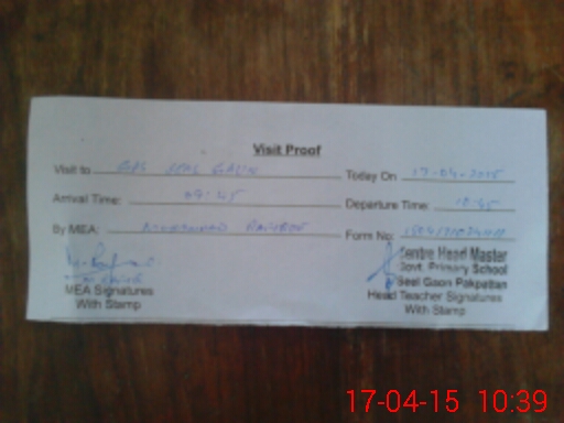 | Attendance Register | Head Teacher | MEA with School | Visit Proof |