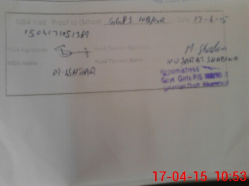 | Attendance Register | Head Teacher | MEA with School | Visit Proof |