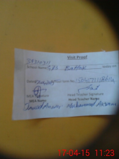 | Attendance Register | Head Teacher | MEA with School | Visit Proof |