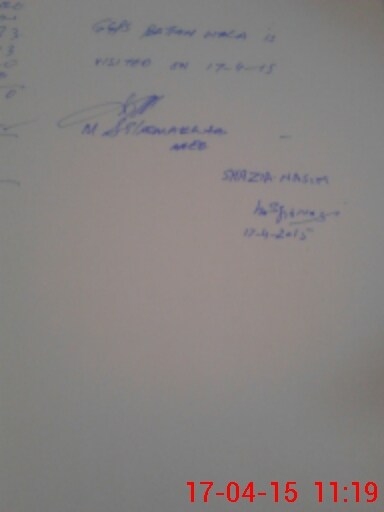 | Monitoring Date: 17-04-2015 | Start Time: 17-04-2015 11:04 AM | End Time: 17-04-2015 11:42 AM | Name of MEA: MU**** SA**** AK**** 13**** | |