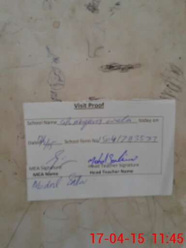 | Attendance Register | Head Teacher | MEA with School | Visit Proof |