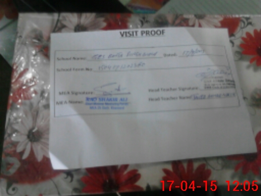 | Attendance Register | Head Teacher | MEA with School | Visit Proof |