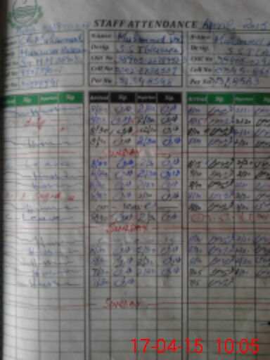 | CNIC | Full Name | Designation | R/C | Absence During Last Calender Month |