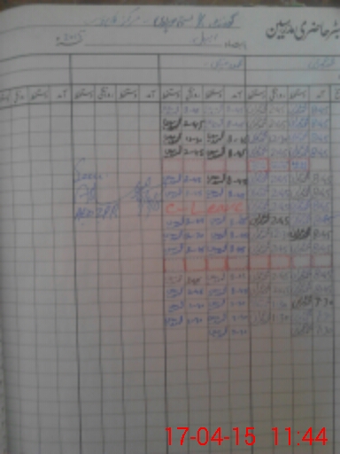 | CNIC | Full Name | Designation | R/C | Absence During Last Calender Month |