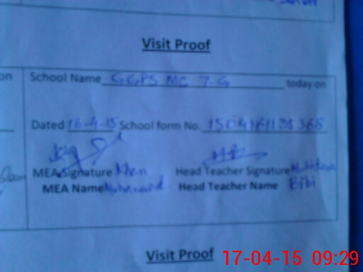 | Attendance Register | Head Teacher | MEA with School | Visit Proof |
