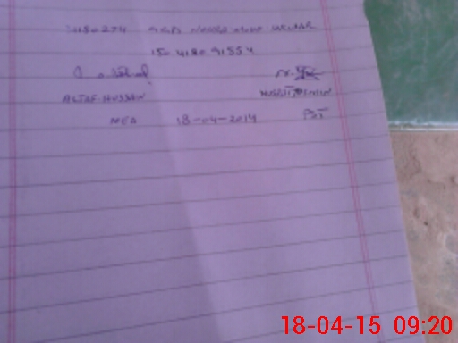 | Monitoring Date: 18-04-2015 | Start Time: 18-04-2015 08:51 AM | End Time: 18-04-2015 09:20 AM | Name of MEA: Al**** Hu**** BN**** | |