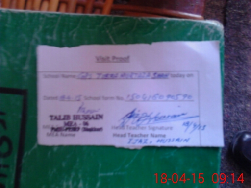 | Attendance Register | Head Teacher | MEA with School | Visit Proof |