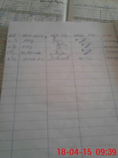 | Monitoring Date: 18-04-2015 | Start Time: 18-04-2015 08:56 AM | End Time: 18-04-2015 09:41 AM | Name of MEA: Ir**** Al**** BN**** 07 | |