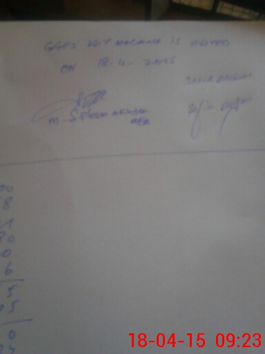 | Monitoring Date: 18-04-2015 | Start Time: 18-04-2015 08:54 AM | End Time: 18-04-2015 09:41 AM | Name of MEA: MU**** SA**** AK**** 13**** | |