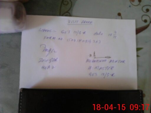 | Monitoring Date: 18-04-2015 | Start Time: 18-04-2015 08:54 AM | End Time: 18-04-2015 09:52 AM | Name of MEA: Z-**** Zu**** Al**** (C**** ex**** 31**** | |