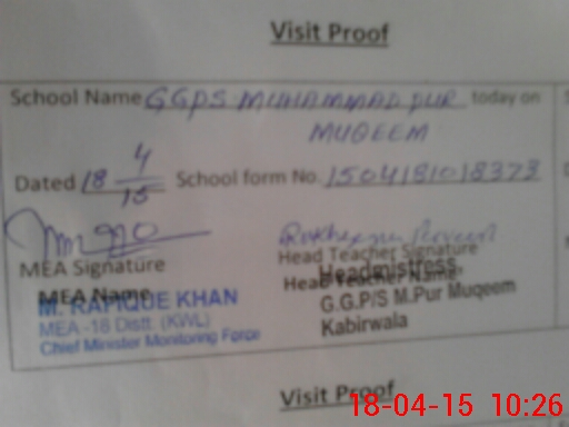 | EMIS Code: 36410335 | Name of School: GGPS MUHAMMAD PUR MUQEEM, KABIRWALA | |||