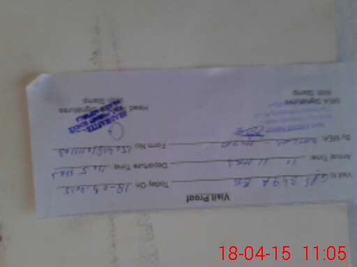| Monitoring Date: 18-04-2015 | Start Time: 18-04-2015 10:11 AM | End Time: 18-04-2015 11:05 AM | Name of MEA: Kh**** Ha**** (R**** | |