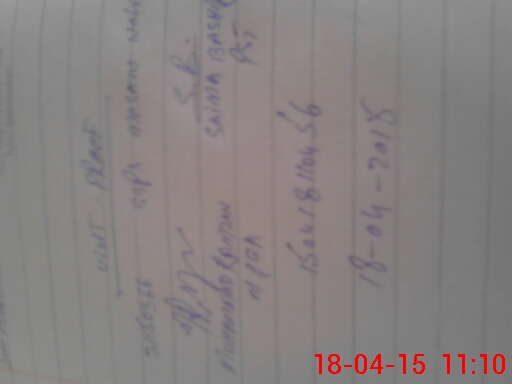 | Monitoring Date: 18-04-2015 | Start Time: 18-04-2015 10:23 AM | End Time: 18-04-2015 11:12 AM | Name of MEA: Mu**** Ra**** BN**** 37 | |