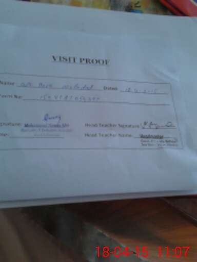 | Attendance Register | Head Teacher | MEA with School | Visit Proof |
