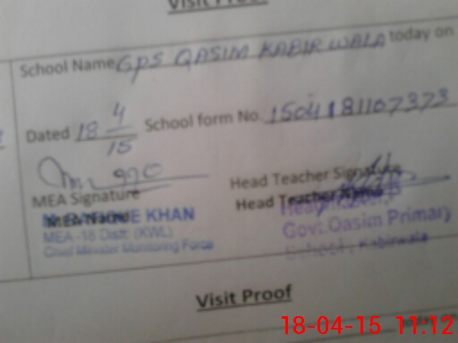 | EMIS Code: 36410155 | Name of School: GPS QASIM KABIRWALA, KABIRWALA | |||