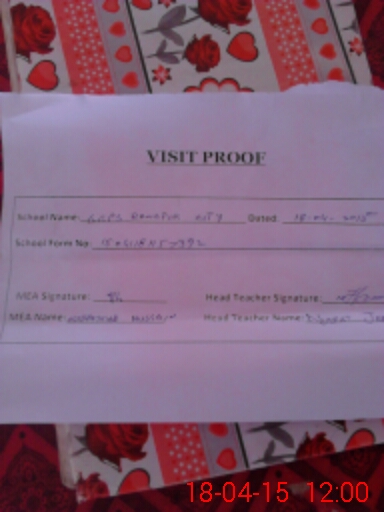 | Attendance Register | Head Teacher | MEA with School | Visit Proof |