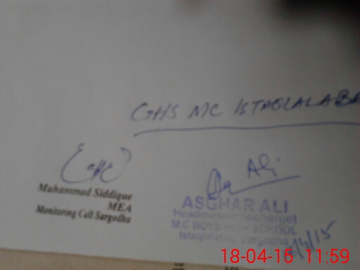 | EMIS Code: 38420025 | Name of School: GHS MC ISTAQLAL ABAD SARGODHA | |||