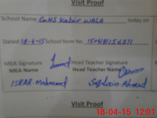 | EMIS Code: 36410004 | Name of School: GHS KABIRWALA | |||