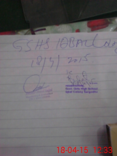 | EMIS Code: 38420222 | Name of School: GGHS IQBAL COLONY SARGODHA | |||