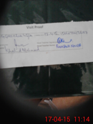 | School Visited by School Health & Nutrition Supervisor (No. of Visits) | 1 | Name1: | AMNA ATTA | Name2: | NIL |