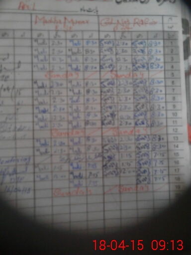 | Monitoring Date: 18-04-2015 | Start Time: 18-04-2015 09:10 AM | End Time: 18-04-2015 09:35 AM | Name of MEA: Mu**** As**** KP**** | |