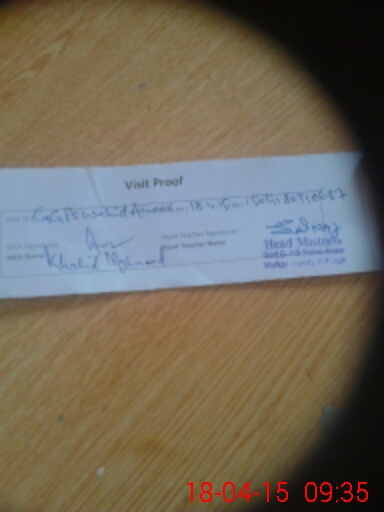 | Attendance Register | Head Teacher | MEA with School | Visit Proof |