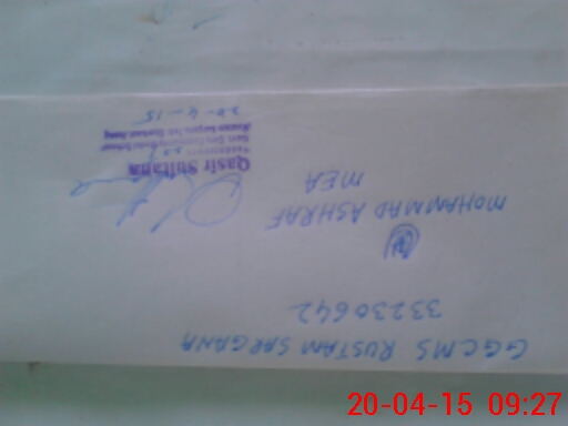 | Monitoring Date: 20-04-2015 | Start Time: 20-04-2015 08:20 AM | End Time: 20-04-2015 09:31 AM | Name of MEA: S-**** MO**** AS**** (R**** 06**** | |