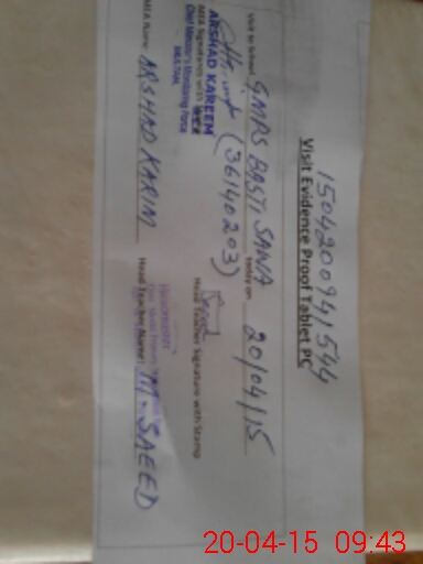 | Attendance Register | Head Teacher | MEA with School | Visit Proof |